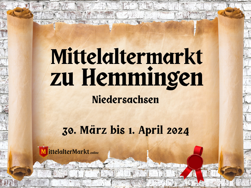 Der 11. Mittelaltermarkt zu Hemmingen (NI) findet vom 30. März bis 1. April 2024 im Freibad Arnum, statt. Veranstaltet wird er von Das Nordische Marktvolk & Keyano Events.