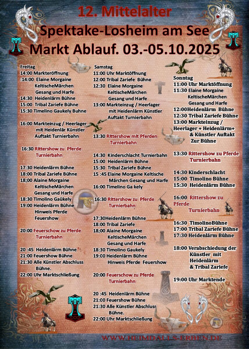 Vom 03. bis 05. Oktober 2025 erwecken Heimdalls-Erben das Saarland erneut zum Leben: Das 12. Mittelalterliche Spektakel in Losheim am See findet auf der großen Wiese am Stausee statt und bietet drei Tage lang ein einzigartiges Erlebnis für Ritterfans, Familien und Mittelalterbegeisterte.