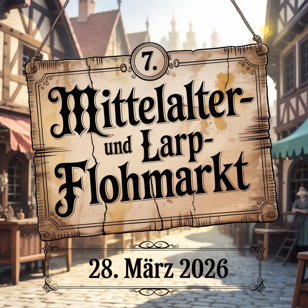Der 7. Mittelalter- und LARP-Flohmarkt 2026 findet am 28. März 2026 von 10:00 bis 15:00 Uhr in Karlsruhe-Mühlburg, Brandenburg, Deutschland statt. Veranstaltungsort ist das Vereinsheim in der Hardtstraße 37A sowie der direkt davorliegende Parkplatz, der an diesem Tag vollständig in das Geschehen eingebunden wird.