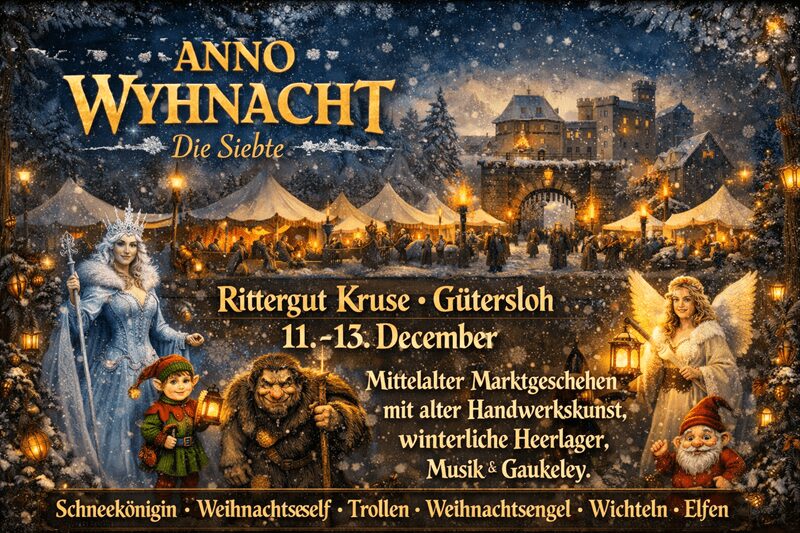 Die ANNO 1280 Wyhnacht VII 2026 findet vom 11. bis 13. Dezember 2026 auf dem Rittergut Kruse in Barsinghausen, Niedersachsen, Deutschland statt. Am verlängerten 3. Adventswochenende verwandelt sich das historische Gut in einen stimmungsvollen mittelalterlichen Adventsmarkt. Bereits zum siebenten Mal lädt die Schneekönigin gemeinsam mit dem Weihnachtself und ihrem Gefolge zu diesem besonderen Winterfest ein.
