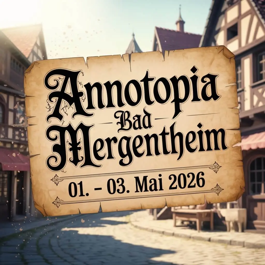 Das Annotopia Bad Mergentheim 2026 findet vom 01. bis 03. Mai 2026 im Residenzschloss Bad Mergentheim in Baden-Württemberg statt. Deutschlands größtes Fantasy-Festival kehrt damit zum sechsten Mal ins Taubertal zurück und eröffnet zugleich die Annotopia-Saison 2026.