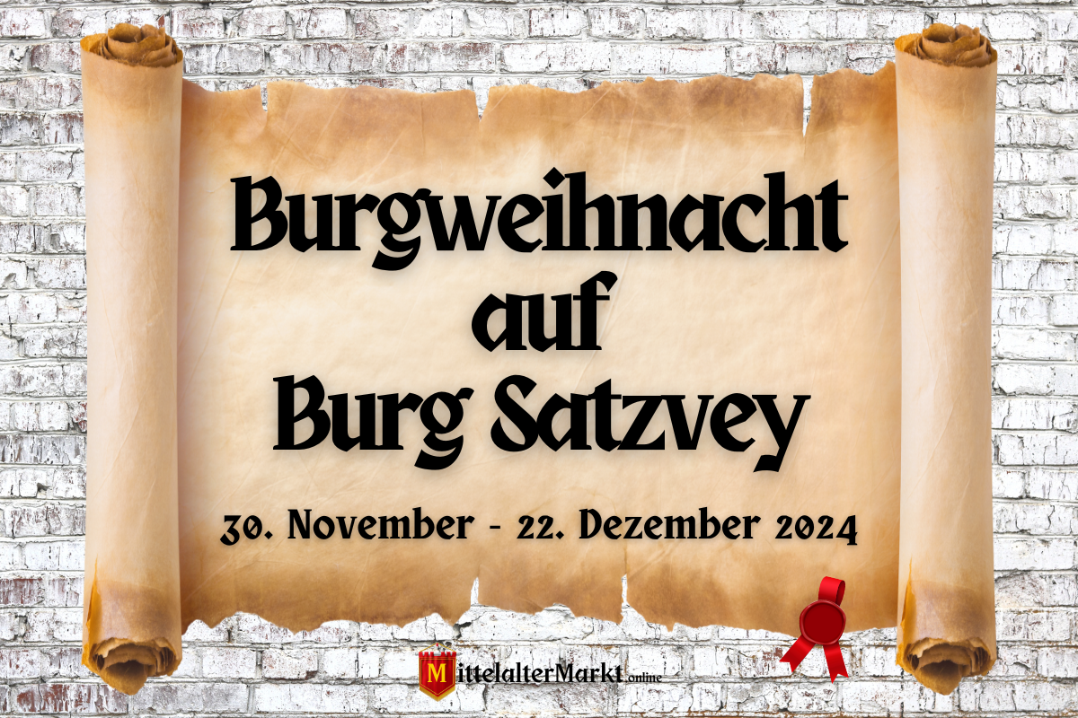 Die Burgweihnacht auf Burg Satzvey in Mechernich-Satzvey öffnet vom 30. November bis zum 22. Dezember 2024 an den Adventswochenenden ihre Tore und lädt zu einem der stimmungsvollsten Weihnachtsmärkte der Eifel ein. In der imposanten Kulisse der Wasserburg können Besucher in eine festliche Atmosphäre eintauchen, die von funkelndem Lichterglanz, traditionellem Weihnachtsduft und historischem Flair geprägt ist. Händler bieten an den Ständen handgefertigte Waren und regionale Spezialitäten an, und das kulinarische Angebot kommt dabei ganz ohne Einweggeschirr aus.