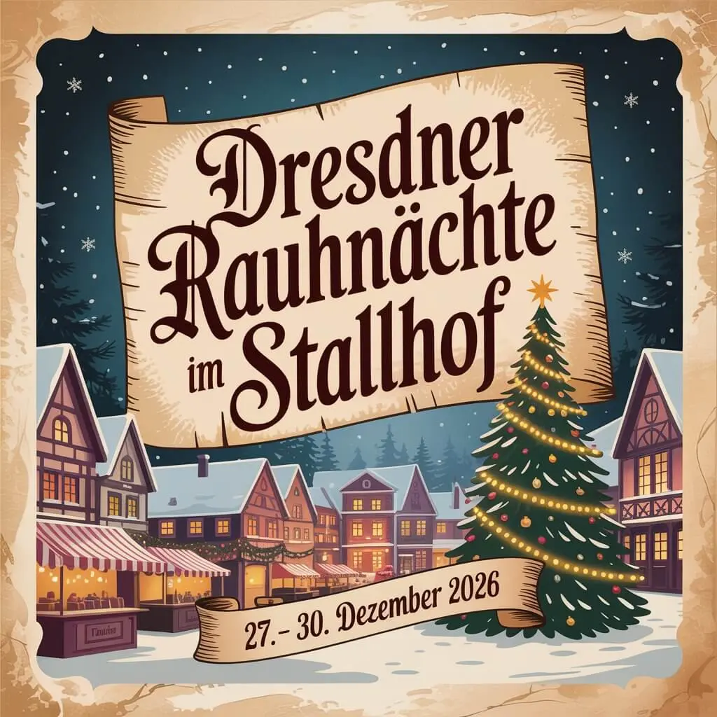 Die Dresdner Rauhnächte im Stallhof 2026 finden vom 27. bis 30. Dezember 2026 im Stallhof in Dresden, Sachsen, statt und holen die geheimnisvolle Zeit zwischen Weihnachten und Dreikönig mitten in die Altstadt. An diesen vier Tagen verwandelt sich der historische Ort in einen mittelalterlichen Jahrmarkt voller Magie, Musik und Mystik, bei dem alte Bräuche, rätselhafte Gestalten und besondere Düfte aufeinandertreffen.