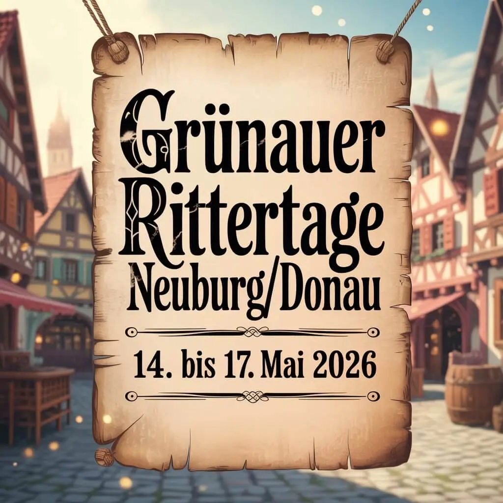 Die Grünauer Rittertage Neuburg/Donau 2026 finden vom 14. bis 17. Mai 2026 auf dem Schloss Grünau in Neuburg an der Donau, Bayern, Deutschland statt. An vier Tagen verwandelt sich das historische Jagd- und Renaissanceschloss in eine lebendige Bühne für Ritter, Landsknechte, Handwerker und fahrendes Volk.