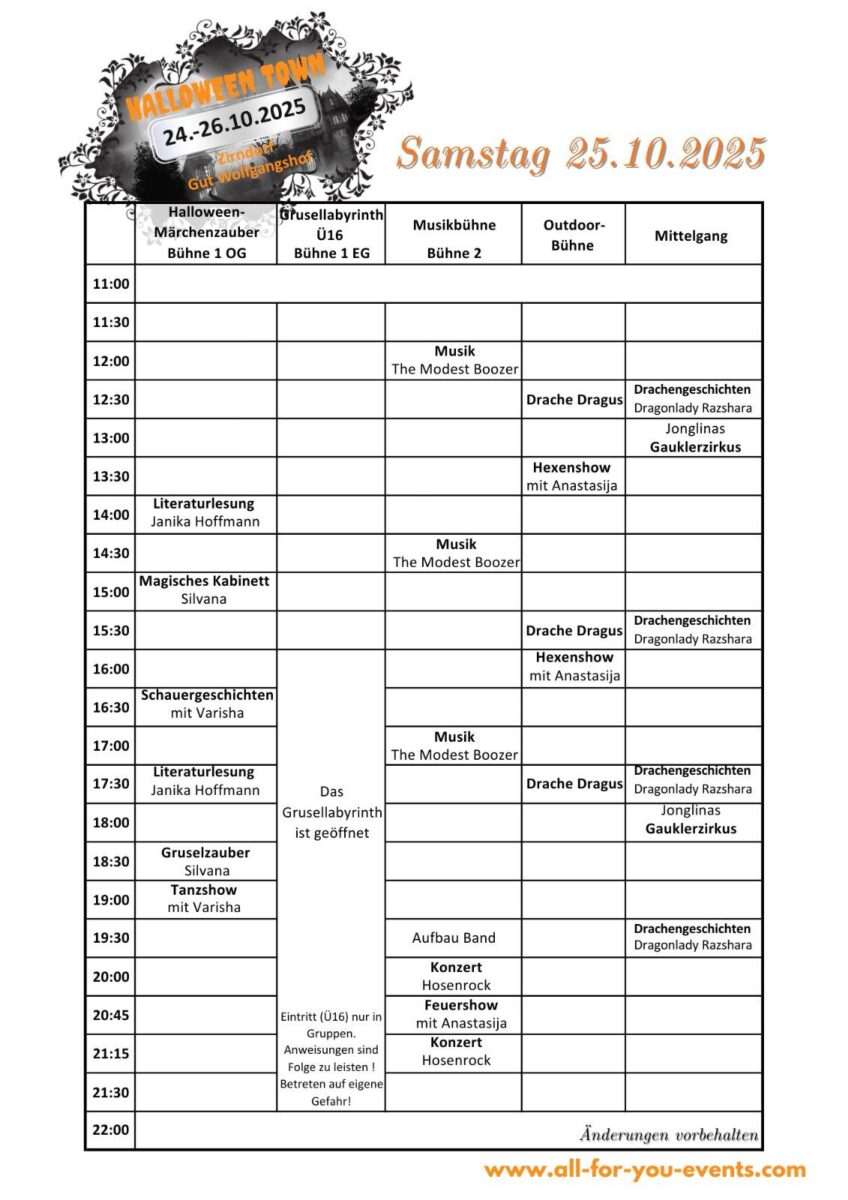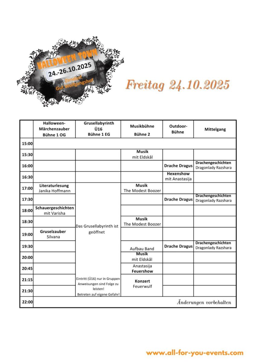Vom 24. bis 26. Oktober 2025 verwandelt sich Gut Wolfgangshof in Zirndorf, Bayern, in eine einzigartige Erlebniswelt: Der Halloweentown im Gut Wolfgangshof vereint historische Marktstimmung, fantastische Elemente und herbstlich-schaurige Halloween-Atmosphäre.