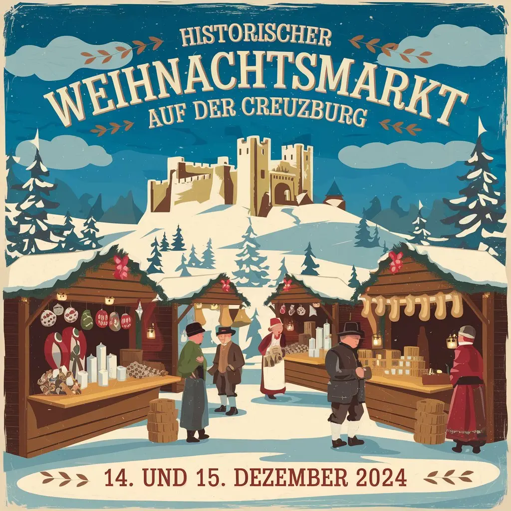 Der Historische Weihnachtsmarkt auf der Creuzburg, der seit 2012 jährlich stattfindet, ist mittlerweile eine feste Größe in der Region und erfreut sich wachsender Beliebtheit. Besucher werden von der besonderen Atmosphäre des Marktes angezogen, der sich durch seine authentisch gestalteten Stände und das vielfältige Angebot auszeichnet. Hier finden Sie handgefertigte Produkte, mittelalterliche Bekleidung, Felle und kunstvolle Handwerkswaren, die von erfahrenen Händlern und Handwerkern aus Nah und Fern feilgeboten werden.