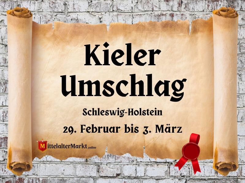 Kieler Umschlag 2024, vom 29. Februar bis 3. März, organisiert von Fogelvrei Produktionen & Kiel-Marketing e.V. Das älteste Volksfest Kiels, das seine Wurzeln im 15. Jahrhundert hat, begeistert sowohl Jung als auch Alt mit einer Mischung aus Unterhaltung, regionaler Kulinarik und außergewöhnlichen Waren. Ursprünglich ein Jahrmarkt, hat sich der Kieler Umschlag zu einem kulturellen und gesellschaftlichen Ereignis entwickelt. Heute bietet das Fest einen historischen Umzug, einen mittelalterlichen Markt, Musik-, Tanz- und Theateraufführungen sowie Aktivitäten für Kinder und Familien.