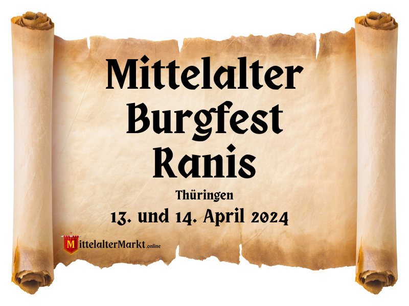 Das Mittelalter-Burgfest Ranis (TH) 2024 findet auf der Burg Ranis in Thüringen, statt. Das Fest wird vom 13. bis 14. April 2024 gefeiert. Es ist eine kulturelle Veranstaltung, die das mittelalterliche Leben nachbildet, mit Marktständen, mittelalterlicher Musik, Gauklern und Rittervorführungen. Besucher können das Burgmuseum besichtigen und an den mittelalterlichen Festlichkeiten teilnehmen.