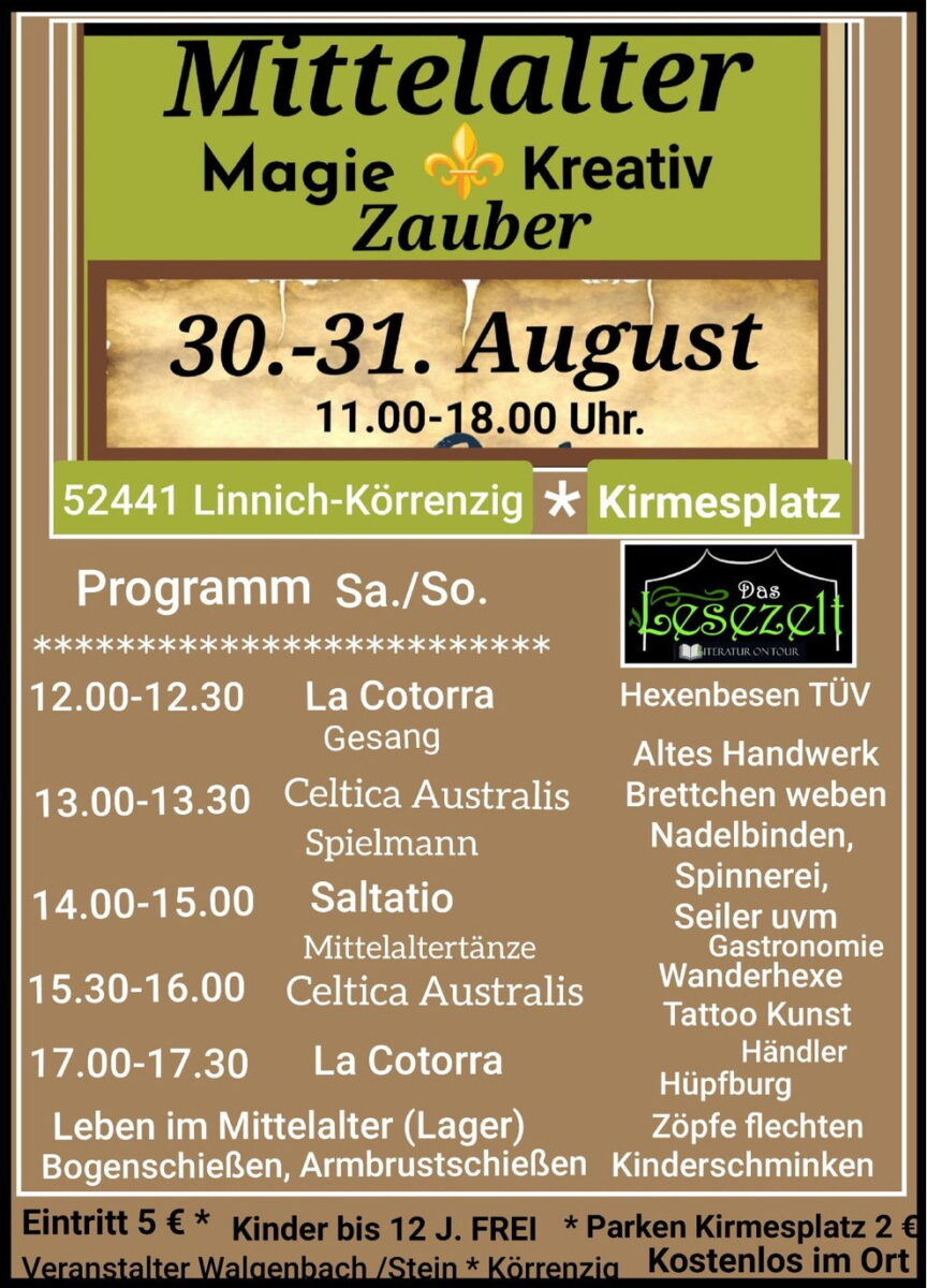 Am 30. und 31. August 2025 verwandelt sich der Kirmesplatz und seine Vorfläche in Linnich (Nordrhein-Westfalen) in ein lebendiges Mittelalterspektakel: das „Mittelalter Magie & Kreativ Zauber 2025“.