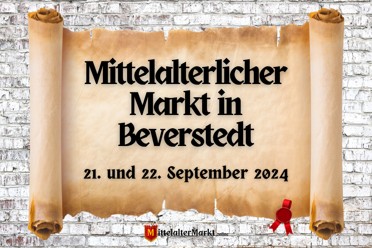 Am 21. und 22. September 2024 findet der Mittelalterliche Markt in Beverstedt statt. Veranstaltungsort ist der Pfarrhof der Stadt Beverstedt in Niedersachsen. An beiden Tagen können Besucher tief in die Welt des Mittelalters eintauchen und ein abwechslungsreiches Programm erleben. Der Markt bietet eine besondere Atmosphäre rund um die alte Kirche, die von historischen Aufführungen und musikalischen Darbietungen begleitet wird.
