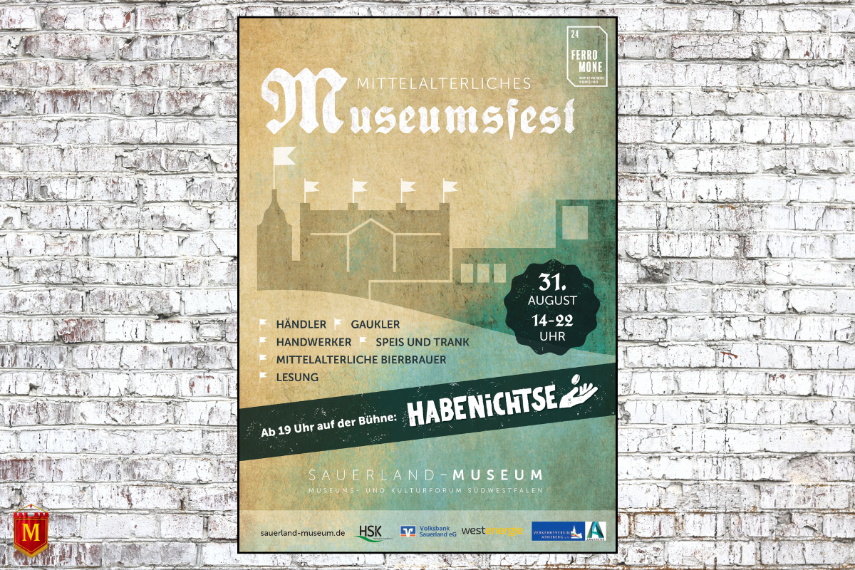 Beim diesjährigen Museumsfest im Rahmen der Veranstaltungsreihe „FERROMONE“, organisiert vom Verein „WasserEisenLand e. V.“, steht das Sauerland-Museum ganz im Zeichen des Mittelalters. Die Veranstaltung bietet Besuchern die Möglichkeit, die faszinierende Welt vergangener Zeiten zu erleben. Marktstände, Gaukler und Feuerkünstler sorgen für ein authentisches Erlebnis, das die Atmosphäre des Mittelalters wieder aufleben lässt. An verschiedenen Ständen werden historische Handwerkskünste präsentiert, darunter die Bearbeitung von Fellen und Leder sowie die Herstellung von Schmuck. Auch das Bierbrauen nach alter Tradition, vor dem Reinheitsgebot, wird anschaulich gezeigt. Der Stellmacher demonstriert seine historische Handwerkskunst und gibt einen Einblick in seine traditionsreiche Arbeit.