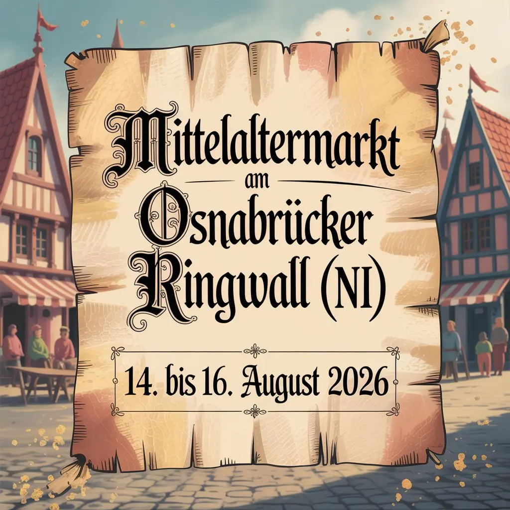 Vom 14. bis 16. August 2026 verwandelt sich Osnabrück in Niedersachsen wieder in eine andere Welt: Der Mittelaltermarkt am Osnabrücker Ringwall, der größte seiner Art in der Region, geht in die sechste Runde – und bringt eine gigantische Zeitreise mit sich! Auf über 3,5 Hektar erwartet euch ein authentisches, fantasievolles und spektakuläres Mittelaltererlebnis mit allem, was dazugehört: Ritterturniere, Feuershows, Live-Musik, Kinderattraktionen, Händler, Handwerker, Gastrovielfalt und eine eigene Kampfarena!