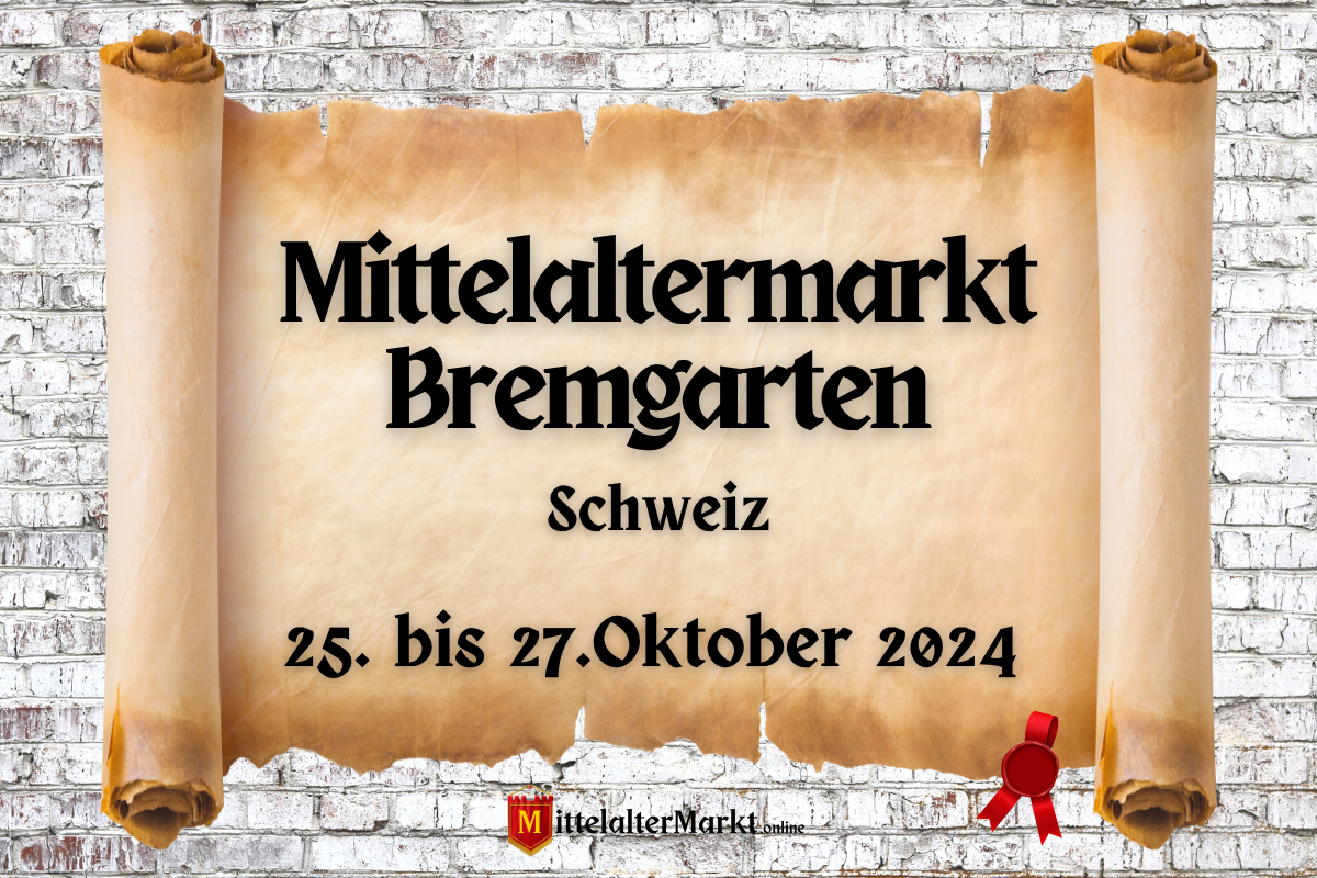 Der Mittelaltermarkt Bremgarten 2024 findet vom 25. bis 27. Oktober 2024 auf dem Casino-Areal in Bremgarten im Kanton Aargau, Schweiz, statt. Die Veranstaltung ist ein Highlight für Liebhaber des Mittelalters und besticht durch ihre Vielfalt, die von historischen Handwerken bis zu einem großen Jahrmarkt reicht. Der mittelalterliche Marktbereich bringt die Zeit des Mittelalters mit Marktständen, Gauklern, Musikanten und vielem mehr zum Leben.