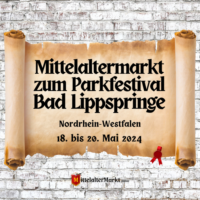Mittelaltermarkt zum Parkfestival in Bad Lippspringe vom 18. bis 20. Mai 2024. Zehn unterschiedliche Live-Bands, ein atmosphärischer Mittelalter- und Kunsthandwerkermarkt sowie eine Vielzahl an kulinarischen Leckerbissen und ein vielseitiges Kinderprogramm erwarten Sie am Pfingstwochenende vom 18. bis 20. Mai, wenn der Arminiuspark in Bad Lippspringe erneut zur großen Konzertarena wird. Beim 21. Parkfestival können sich die Gäste auf ein familienfreundliches Spitzenprogramm freuen. Das Beste daran: Der Eintritt ist kostenlos.