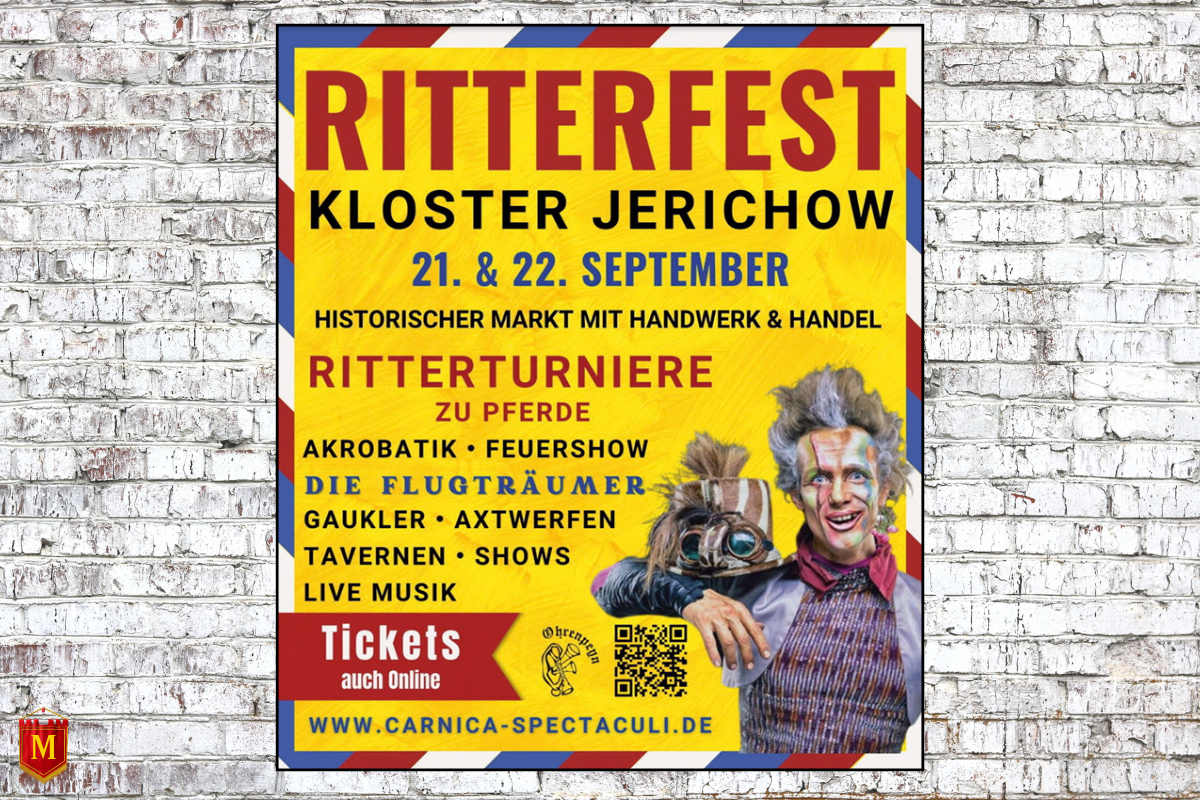 Das Ritterfest am Kloster Jerichow 2024 findet am 21. und 22. September in der historischen Stadt Jerichow (ST) statt. Besucher können sich auf ein mittelalterliches Erlebnis freuen, das am Samstag von 10:00 bis 21:00 Uhr und am Sonntag von 10:00 bis 19:00 Uhr stattfindet. Tickets können bequem online erworben werden.