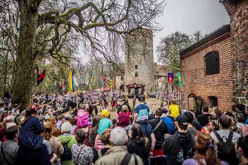 Wenn sich Ritter, Händler, Handwerker und Gaukler auf dem Burggelände versammeln, wird Geschichte lebendig. Zwischen Marktständen, Lagerleben und Musik entsteht eine lebendige Atmosphäre, die Besucher direkt in eine frühere Zeit versetzt.