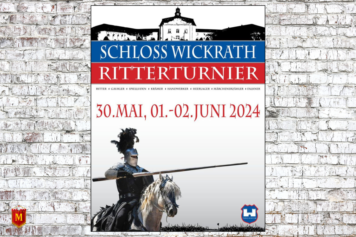 Das Ritterturnier Schloss Wickrath 2024 findet vom 30. Mai bis zum 2. Juni im Schloss Wickrath in Mönchengladbach (NW) statt. Veranstaltet von History & Event, bietet dieses Mittelalterfest eine einzigartige Gelegenheit, in die Welt des mittelalterlichen Lebens einzutauchen. Besucher können sich auf spektakuläre Ritterturniere, mittelalterliches Handwerk und historische Lager freuen.