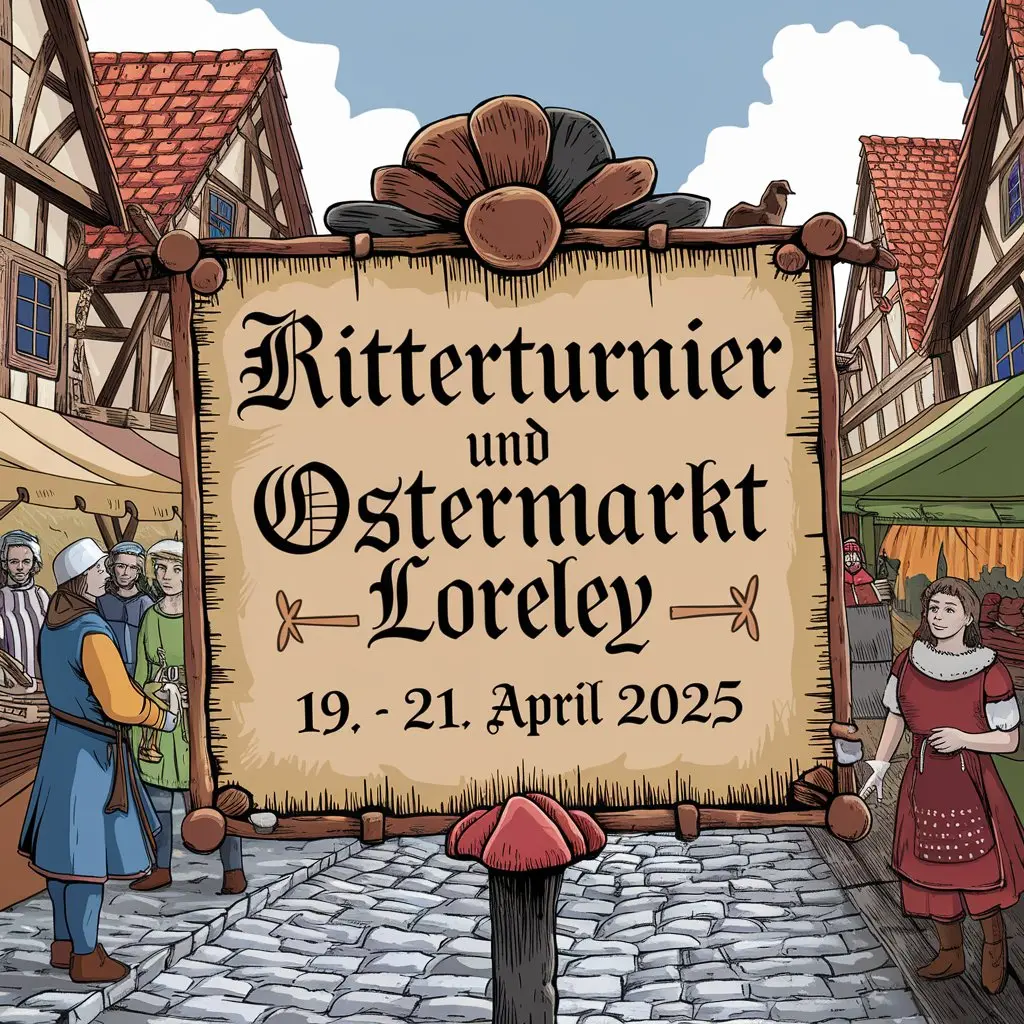 Das Ritterturnier und Ostermarkt Loreley 2025 verspricht ein einzigartiges Erlebnis voller ritterlicher Kämpfe, Musik, Gaukelei und Markttreiben in einer der schönsten Kulissen Deutschlands. Seid dabei und erlebt das Mittelalter hautnah!