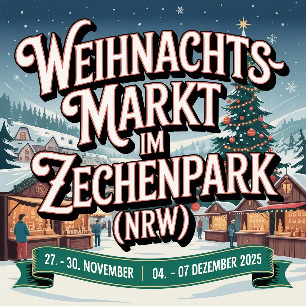 Vom 27. November bis 7. Dezember 2025 lädt der Weihnachtsmarkt im Zechenpark Kamp-Lintfort an zwei Adventswochenenden zum stimmungsvollen Weihnachtserlebnis auf historischem Boden ein. Der Quartiersplatz zwischen Förderturm und Fördergerüst bildet die beeindruckende Kulisse für einen ganz besonderen Markt mit Charme, Geschichte und Lichterglanz.
