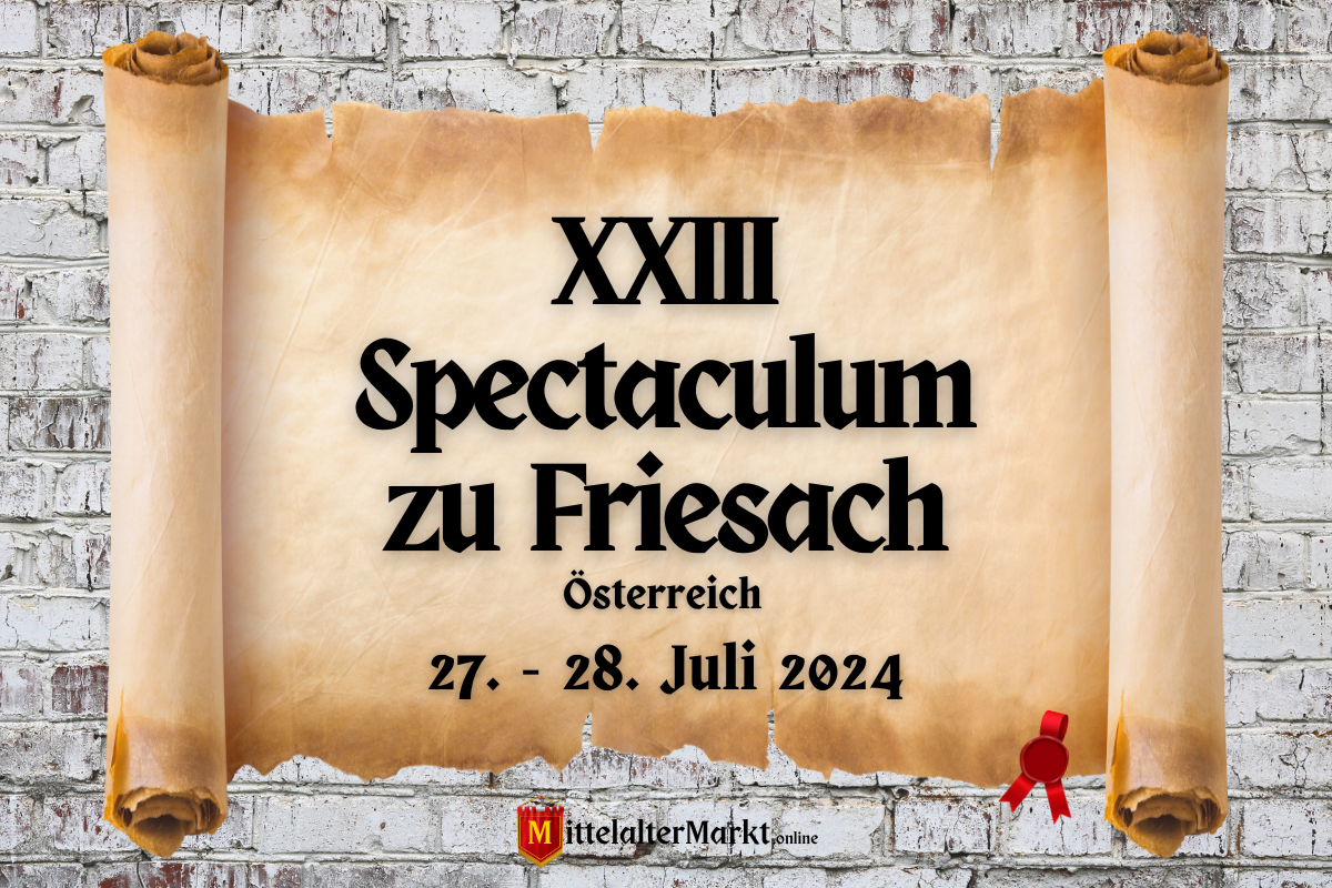 Das XXIII. Spectaculum zu Friesach ist ein bedeutendes historisches Fest, das jährlich in der ältesten Stadt Kärntens, Friesach, veranstaltet wird. Dieses Event bietet ein lebendiges Bild aus vergangenen Zeiten, mit mittelalterlichen Märkten, aufregenden Ritterturnieren, faszinierender Musik und Tanz sowie vielfältigen Handwerksvorführungen. Besucher haben die Möglichkeit, in eine faszinierende Welt einzutauchen und die Atmosphäre des Mittelalters hautnah zu erleben. Am 27. und 28. Juli 2024 verwandelt sich Friesach für zwei Tage ins Mittelalter und feiert gemeinsam mit tausenden gewandeten Frauen, Männern und Kindern das schönste Mittelalterspektakel in Österreich.